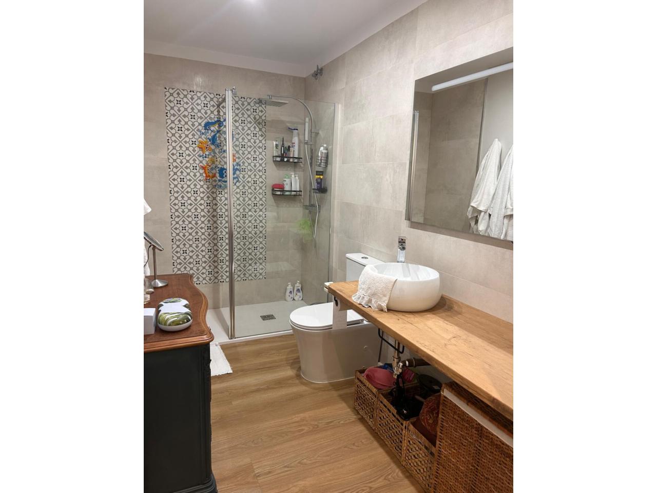 Toda la vivienda dispone de parquet hidrófugo, aportando continuidad y calidez a cada estancia. Las ventanas de doble cristal oscilobatientes garantizan un excelente aislamiento térmico y acústico. El baño, amplio y de diseño, incluye una mampara ya instalada.