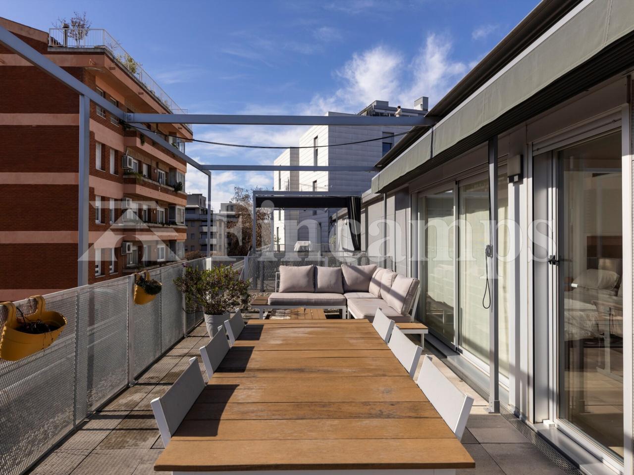 La joya de la vivienda es su impresionante terraza de 25 m², un auténtico oasis urbano para desayunar al sol, relajarte o compartir cenas al aire libre.